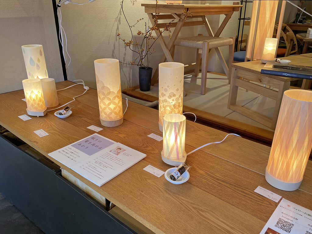吉野檜あかりと和紙アート展が終了いたしました。お越しいただきました皆さま、オンラインショップをご覧いただきました皆さま、ありがとうございました。