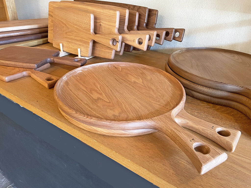 クリスマスやお正月など、食卓を素敵に演出してくれる木の器やカッティングボード、ピザ皿も届いています。ぜひお越しください。