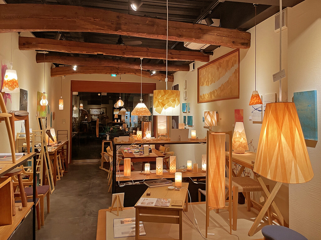 今回初めての展示だった和紙アートは、数は減ってしまいますがこれからも店内に。檜あかりと同じく普段からご覧いただけます。