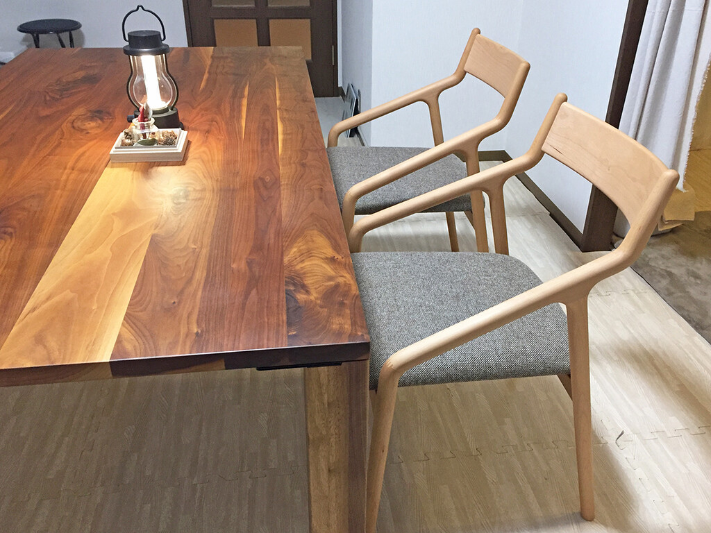 収納家具はオーダーになることが多く既製品に比べて価格も上がってしまいますが、サイズや仕舞いたいものがぴったり収まると見た目も気持ちもすっきりすると喜んでいただけます。今回の食器棚もストレスなく使っていただているご様子でとっても嬉しいです。